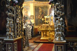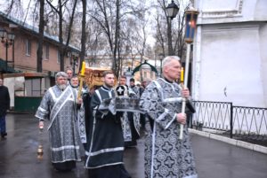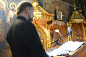Затем настоятель совершил малое повечерие, на котором был прочитан канон «О распятии Господа и на плач Пресвятой Богородицы».