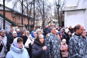 Его Высокопреподобию сослужило духовенство храма: протоиерей Александр Филимонов, иерей Роман Свиденюк, иерей Алексий Берник, иерей Илия Тягин, протодиакон Николай Султан, диакон Феодор Конюхов и диакон Даниил Кабанов, студент III курса Перервинской духовной семинарии.