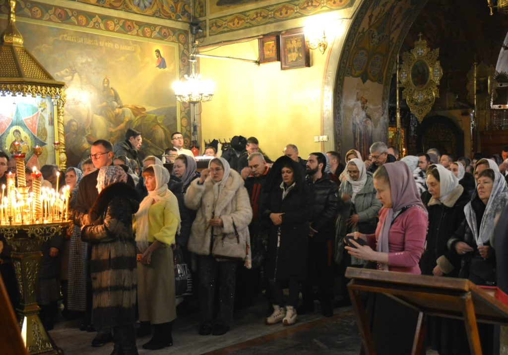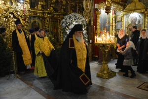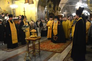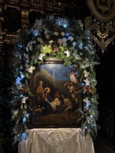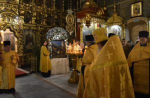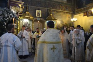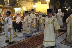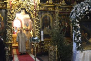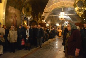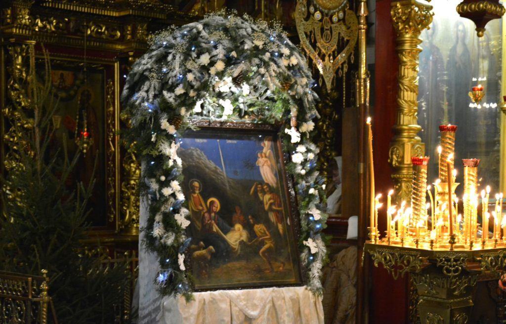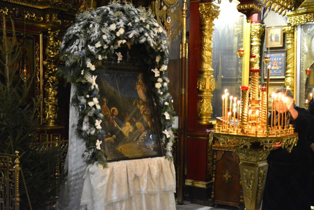 По окончании литургии духовенство совершило славление празднику перед святым Вертепом.